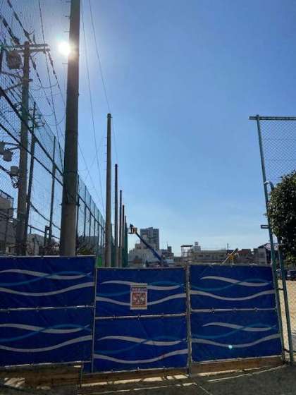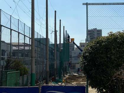 新校舎建築のため、運動場のフェンス撤去作業を行いました。