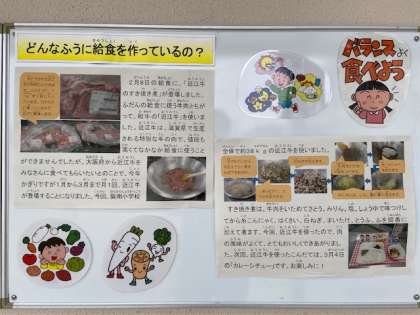 給食室前の新しくなった「給食掲示板」に今後も注目です(^^♪