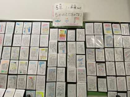 5年生の理科の学習「もののとけ方のきまり」ミニ新聞が理科室前に掲示されています!