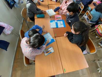 そして、子どもたちは話し合いながらメッセージの内容を考えています。