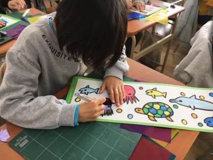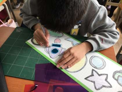 カラーシートをはりつけたあと、くっついていないところをカッターナイフで切り外すのもなかなか難しかったようです。
