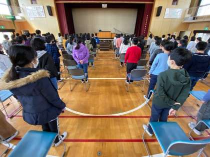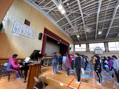 感染拡大防止策を講じながら、卒業式の練習に取り組んでいます。