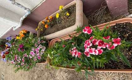 学校のいろんなところにお花が咲いていますよ!