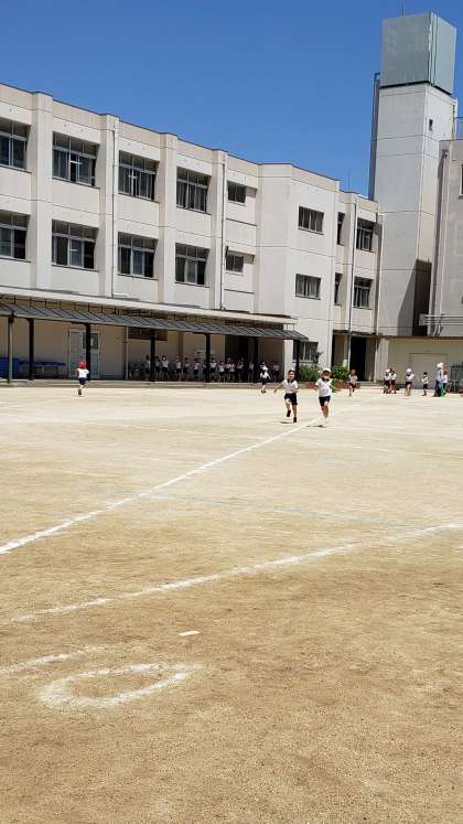 運動場では、2年生が新体力テストの50m走を行っていました。