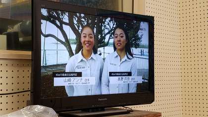 学校放送を使って、高野芹奈選手の紹介動画をみんなで見ました。