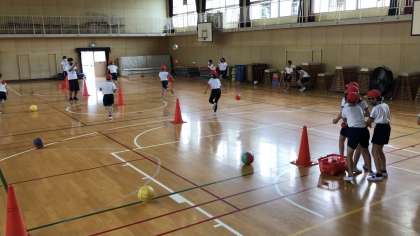 と、緊張した面持ちだった子どもたちも、いろいろな種目に取り組むうちに笑顔が増え、45分があっという間でした。