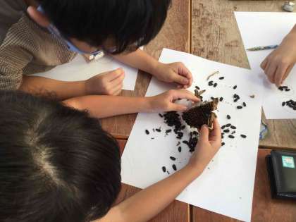 種を取るときに使えるビニール手袋や、取れた種を持って帰ることができるようにと、封筒まで用意してくださいました。自分たちで協力して数えたひまわりの種を持って帰ることができて、大満足の子どもたち。夏の終わりの素敵な思い出ができましたね。