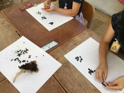 生活科の学習で、1個のひまわりからできる種を班ごとに分担して、協力して数えました。