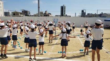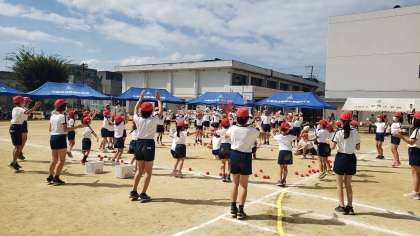 1・6年団体競技「おどって!なげて!ポンポコリン」