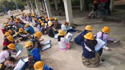 今日は、学校の北側と南側の回るルートを前回と入れ替えて行いました。いつも見ている風景の中にふとした発見があったり、自分達が 行ってるお店や公園、病院などを教えあったりと、自分達が住んでいる町について、より深く知ることができました。