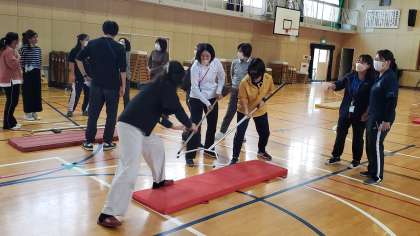 今回は、不審者の動きを封じ込め、反撃を防ぐための護身用具の使い方を研修しました。