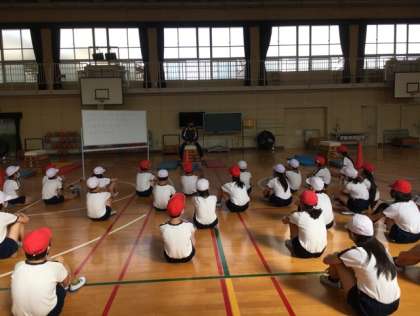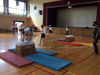 体力向上支援事業として、跳び箱運動の指導にきてくださいました。