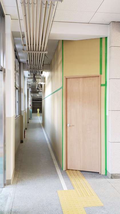 そのため、玄関を入って左手の廊下(北館1F)に衝立が設置され、セパレートになっています。