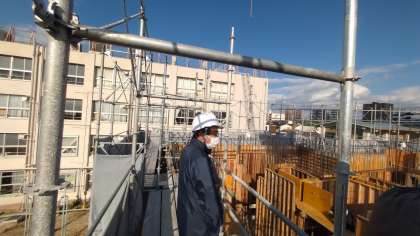 時折、写真2枚目の人が現場管理者と現地視察に行っています。