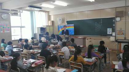 毎週月曜日の8時30分〜は児童朝会(テレビ放送)があります。