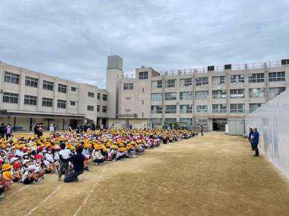 新学年が始まって、新しい教室からの初めての避難訓練でした。児童は、避難のルールをよく守り、行動できていたように思います。