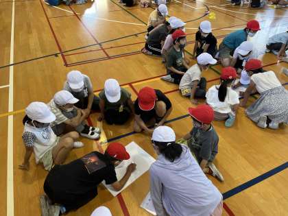 阪南小学校では、木曜日の朝の時間に学年を横断した「ふれあいグループ」に分かれて集会を行います。