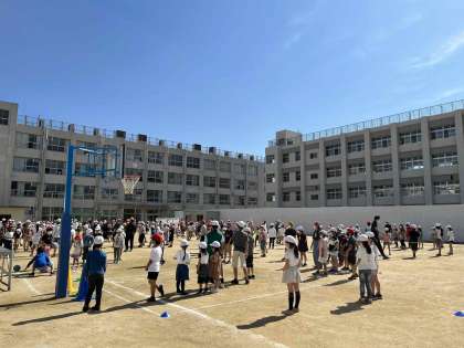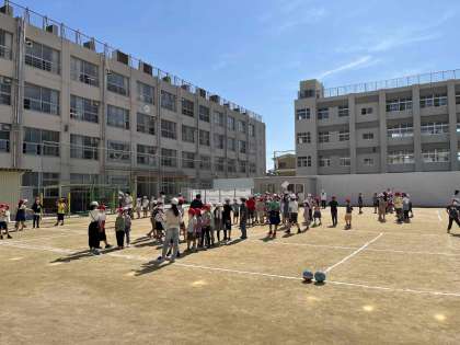 高学年が低学年にボールを渡したり、学年関係なく声をかけあったり…