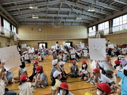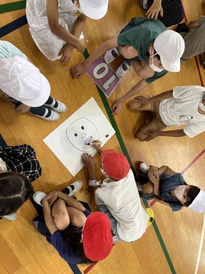 目、鼻、口…と順番に書き進み、最後に「できた!!」と完成した似顔絵を見せてくれました。