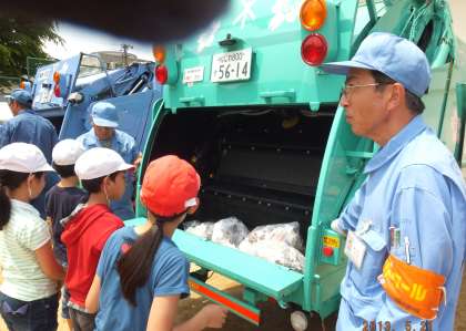 普段から何気なく見ていたパッカー車。今日はとっても近くから見学しました。