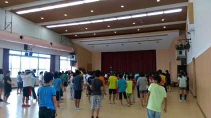 あいにくの雨のため、キャンプファイヤーに向けてスタンツ練習を頑張りました。