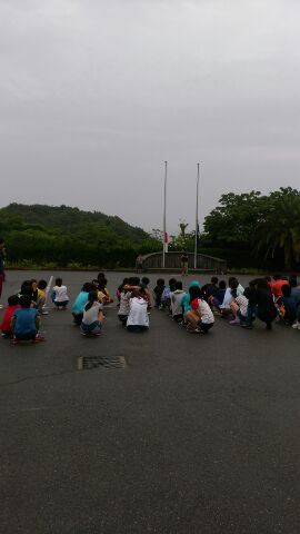 現在小雨が降ってます。朝の集いを終え、今から朝食です。