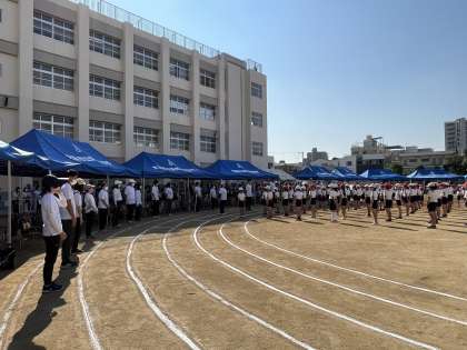5年生の代表児童が、力強い言葉で練習の成果を発揮することを誓いました。