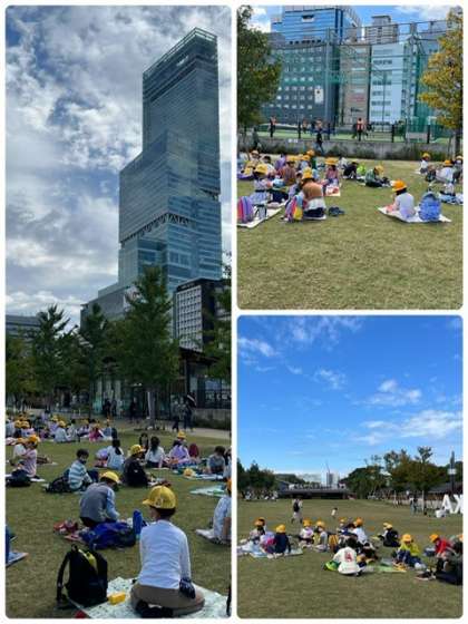 前半をまわり終えたら、「てんしば」でお弁当タイムです。