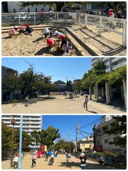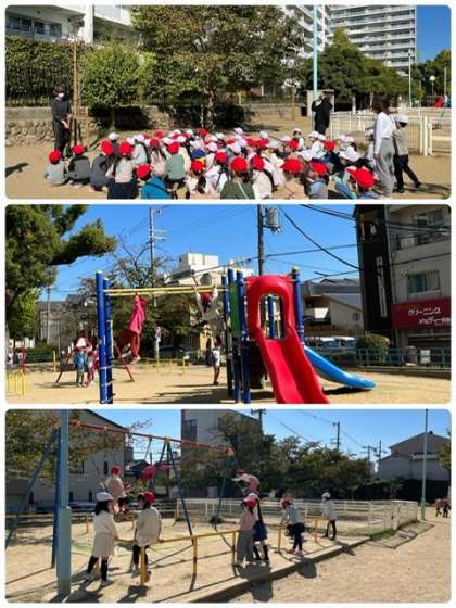 今日(10月31日)は、1年生が阪南公園へたんけんに行きました。