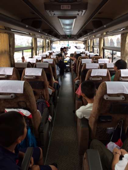 バスの中では、バスレクを楽しんでいます。