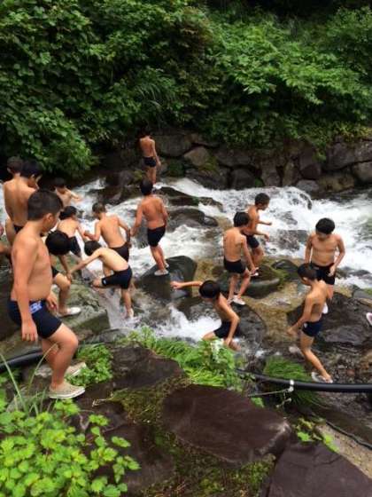 水は冷たいですが、自然の中での遊びに熱中しています。