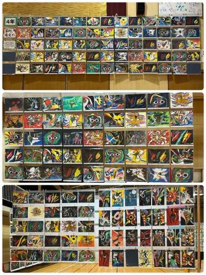色の使い方や重ね方を真似て模写し、子どもたちの個性と融合した迫力ある作品になりました。