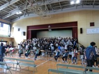 今日の給食は、学校給食献立コンクールの最優秀作品の「牛肉の土手焼き風、はりはり汁、れんこんのフライ大阪ソース味、ごはん、牛乳」でした。