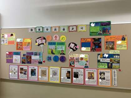 オススメの本をポスターやお昼の校内放送で紹介しています。