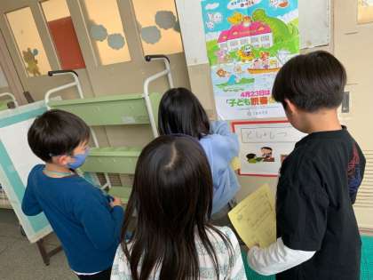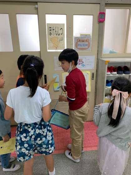2年生は、1年生の手をひいて校長室や職員室、管理作業員室などさまざまな部屋を紹介しました。1年生もお兄さん・お姉さんたちの話をしっかりと聞き、たくさん質問をしていました。