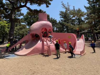 広場にはたくさんの遊具があり、体をめいいっぱい動かして遊びました!