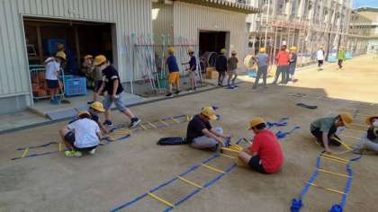 運動委員会では、前半にみんなが楽しめるイベントの企画を、後半に運動場の用具の整備を行いました。