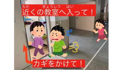 校内に不審者が侵入して児童に危害を与える可能性があると設定し、その場合には、どのような行動をとるべきなのかを、学びました。