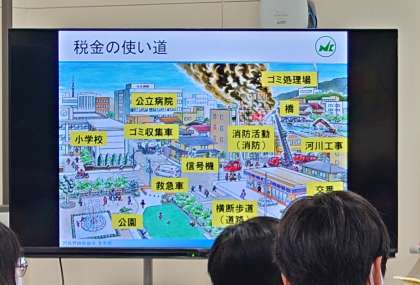 税金とは何か、税金は私達の身の回りの何に使われているのかなど、たくさんのお話を聞いて学習しました。