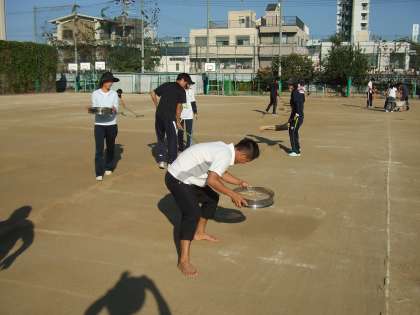 子どもたちが運動会当日に、練習の成果を最大限に発揮できるように、運動場の石拾いを教職員で行っています。