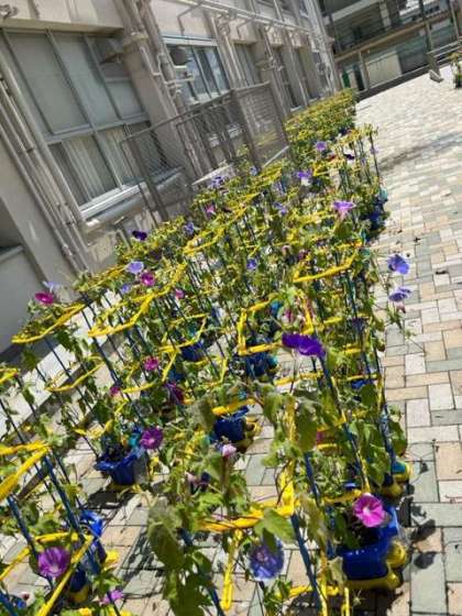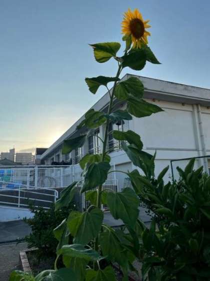 また、1年生が植えた朝顔はたくさんの花が咲き、グリーンキーパーさんが植えたひまわりは、ぐんぐん伸びて立派な花が咲きました。