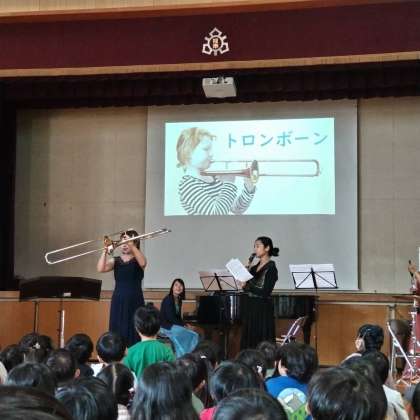 1・3年対象に阿倍野区音楽体感事業で“アンサンブル・サビーナ”の皆さんが演奏に来てくださいました。