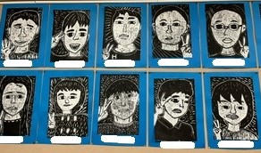 でき上がった作品を見ると、名前の掲示を見なくても「○○さん!」とわかるくらい、特徴をとらえた作品ができ上がりました。