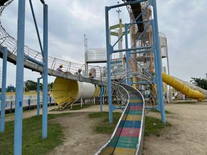 お弁当を食べた後は、遊具で遊ぶ時間です。