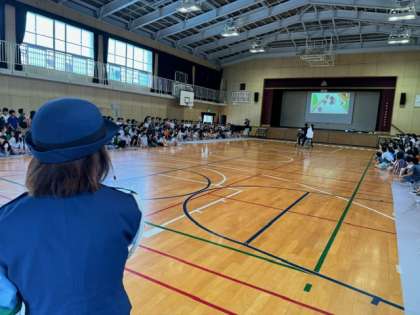 阿倍野警察署と阿倍野区役所の方々が来校されて、交通安全についてのお話をしてくださいました。