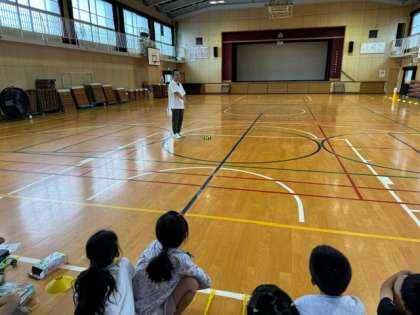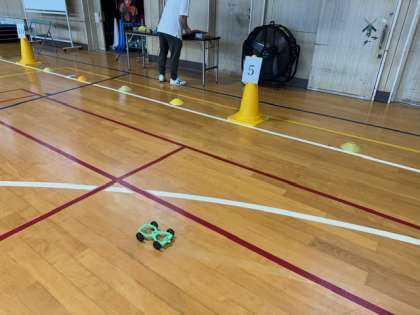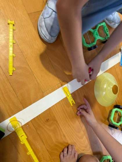 引く力が大きくなると遠くまで進むのをみて、すごい!と目をキラキラとさせていました。