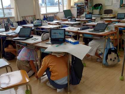 高学年では、なんの指示も出さずとも警報のアラームがなると自然と保護姿勢になっていました。