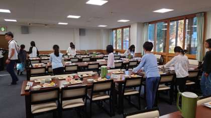 朝の集いの後は、朝食をいただき、山登りのためにパワーを蓄えました!