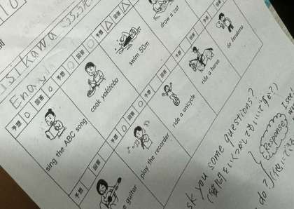 Can you 〜?と、できることについて校長先生や教頭先生に質問していました。