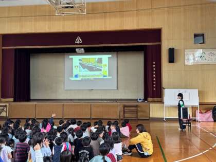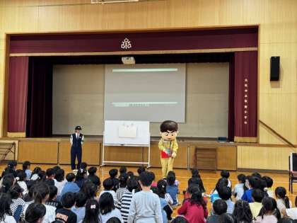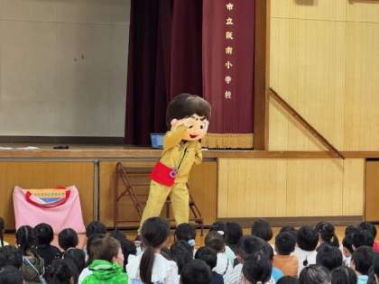 1・2年生に向けて警察の方にゲストティーチャーをしていただき誘拐防止教室を行いました。